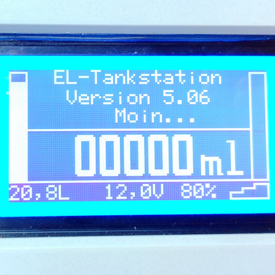 Einstellungen der Tankstation werden mit dem Drehknopf durchgeführt. Durch Druck auf den Drehknopf startet das Setup, ein erneuter Druck beendet das Setup. Durch drehen werden die Einstellwerte im Setup verändert