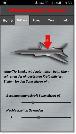 Auf dieser Seiten können dier Schwellwert für die G-Kraft