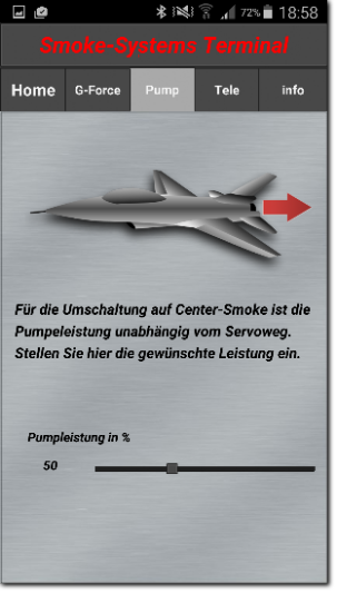 Nachdem die Verbindung zwischen App und GF-SmokeDriver hergestellt ist, können die Parameter einfach eingestellt werden.
