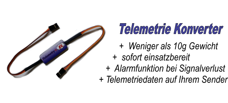 Der TeleKonverter wird vom Empfänger mit der nötigen Betriebsspannung versorgt. Die Beiden Eingänge vom TeleKonverter sind elektrisch voneinander getrennt und sichern den Betrieb ab.